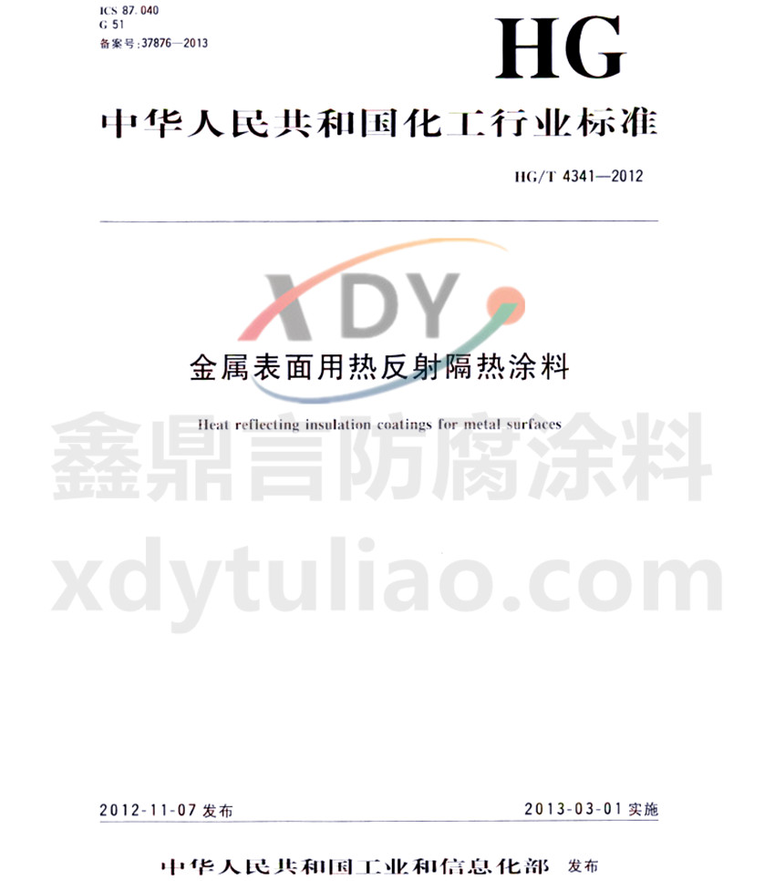 HG/T4341-2012金屬表面用熱反射隔熱涂料標準