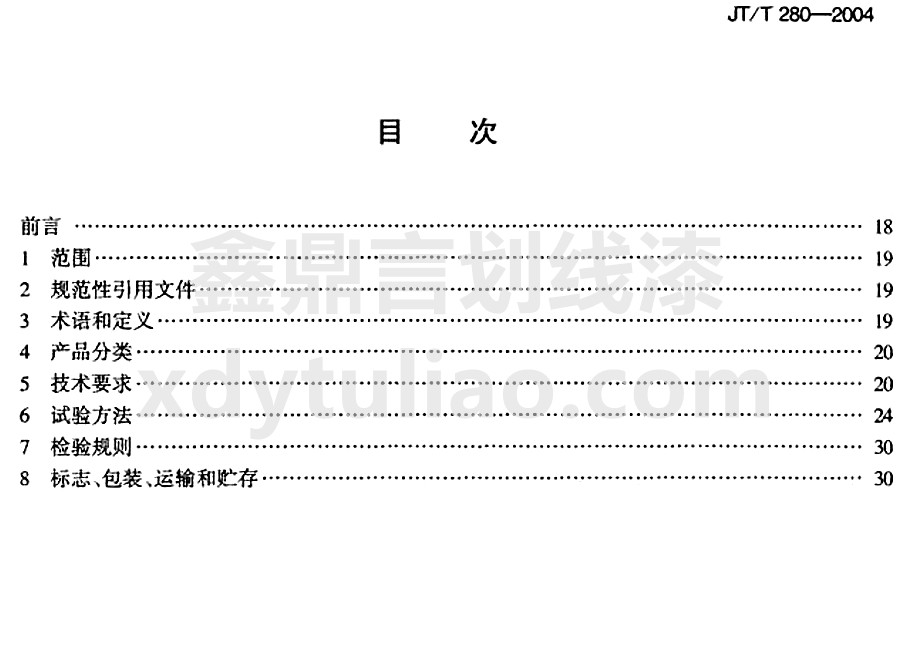 JT/T 280-2004路面標(biāo)線(xiàn)涂料標(biāo)準(zhǔn)是小編照搬JT/T 280-2004《路面標(biāo)線(xiàn)涂料》紙質(zhì)版內(nèi)容,大家可以放心參考。更多防腐涂料執(zhí)行國(guó)家和行業(yè)標(biāo)準(zhǔn)等防腐涂料相關(guān)信息可以參與網(wǎng)站:m.utocar.com