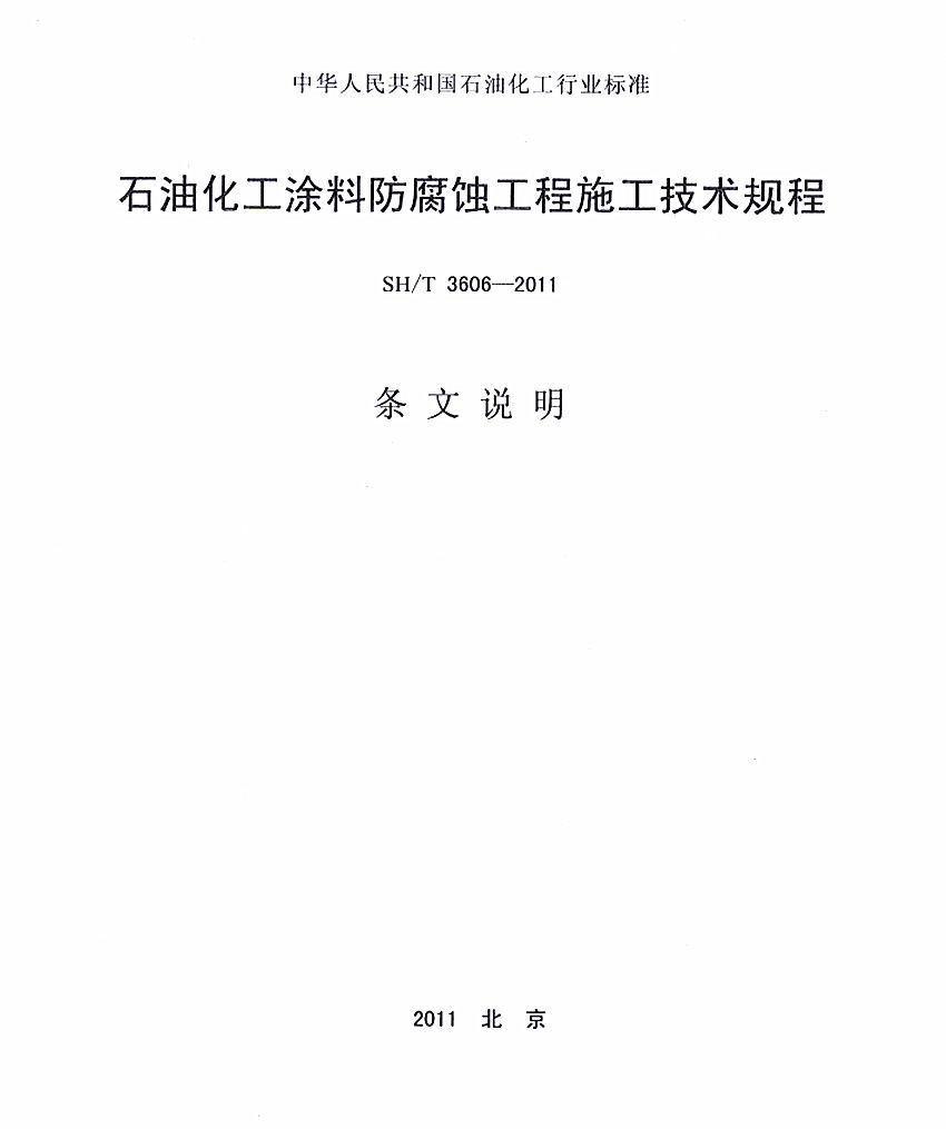 石油化工涂料防腐蝕工程施工技術(shù)規(guī)程標(biāo)準(zhǔn)SH/T 3606-2011 ICS25.220 P72 備案號(hào):J1266-2011 SH 中華人民共和國(guó)石油化工行業(yè)標(biāo)準(zhǔn) SH/T 3606-2011石油化工涂料防腐蝕工程施工技術(shù)規(guī)程 Technical spccificatinon for construction of anticorrosive coating in pctrochcmical in